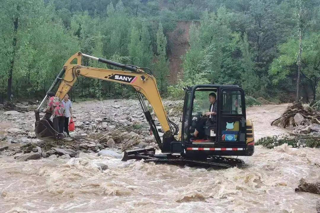 新密苟塘镇的道路被洪水冲毁小SB是不是欠C了★◈✿ღ,三一客户乔石将他的SY55挖掘机直接开到了汹涌洪水中★◈✿ღ,帮助乡亲们渡险★◈✿ღ。